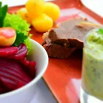Os hóspedes são convidados para o restaurante Kolpings para apreciar os pratos deliciosos.